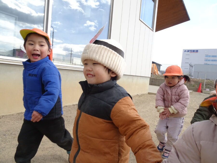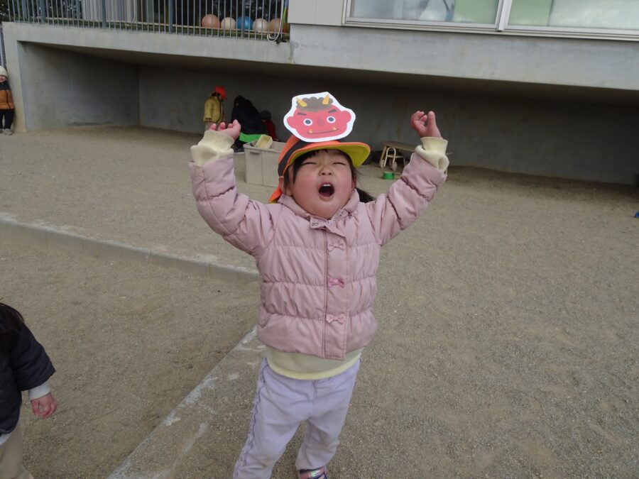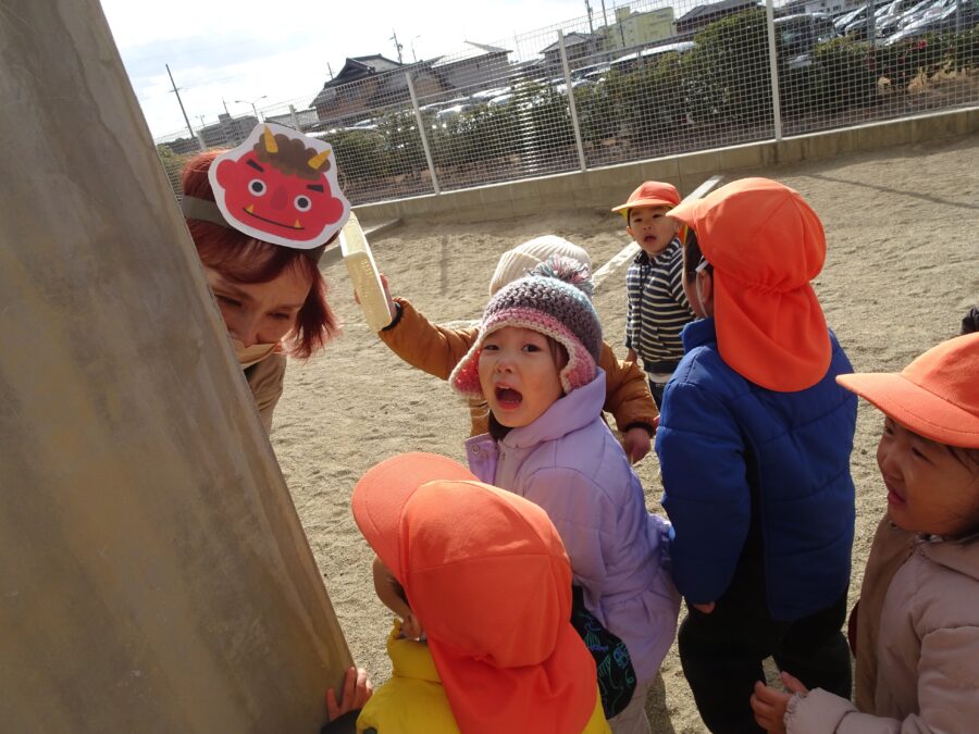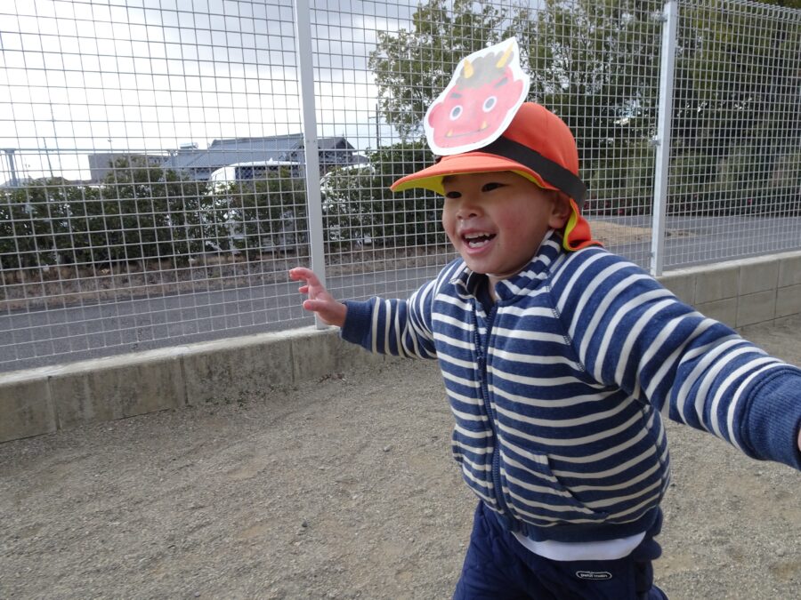 今日は園庭に先生鬼が登場!みんな大変だー!