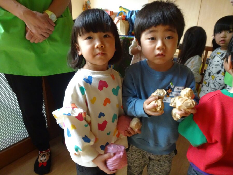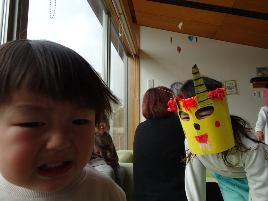 最後は、きらきらさんの鬼と「バイバーイ」と笑顔で手を振っていました![]()
