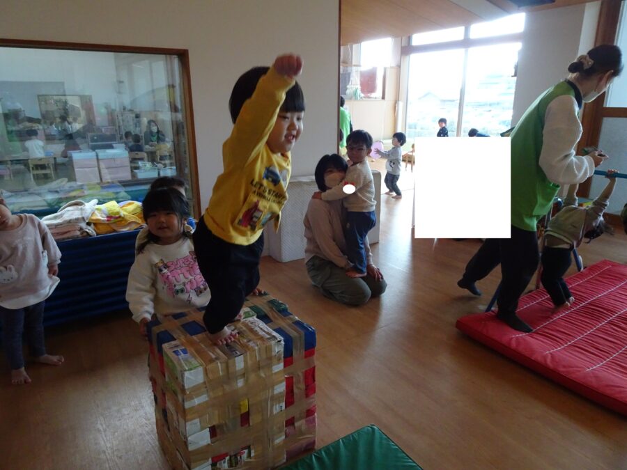 ジャンプ台では、すくすくさんものびのびさんの真似をして登って、