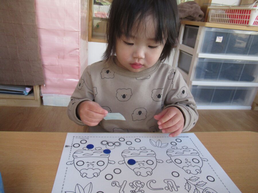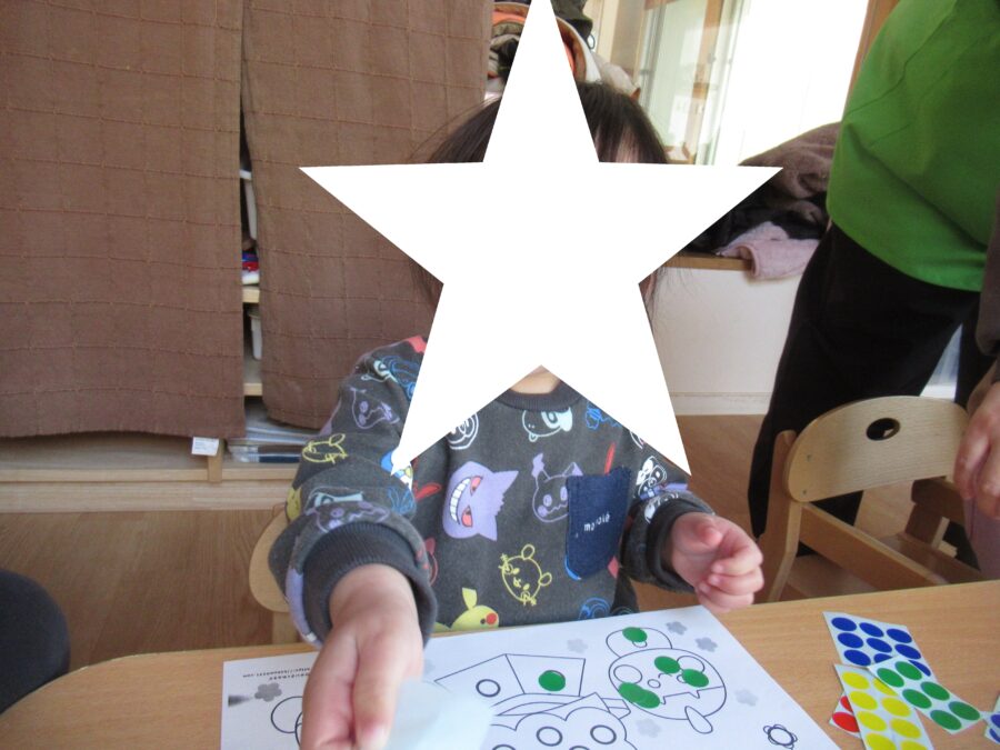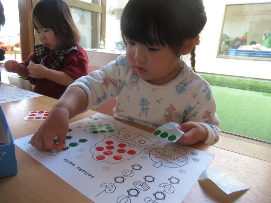 シール貼りに夢中のお友だちもいましたよ![]()