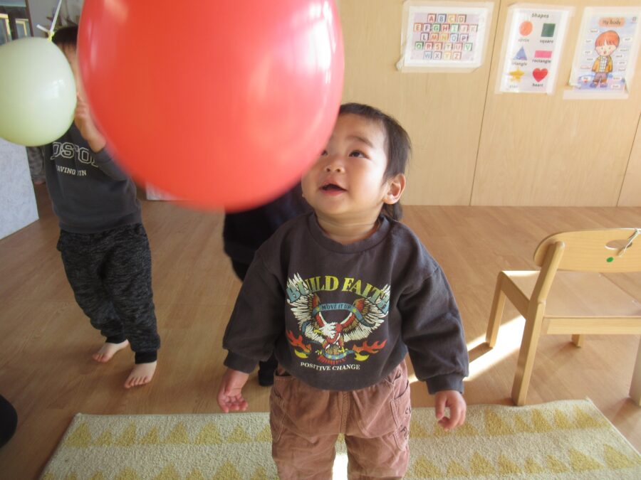 風船を引っ張って、動く風船に楽しそうにする姿が見られました🎈