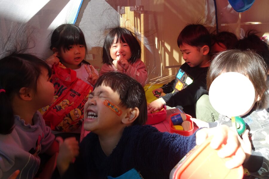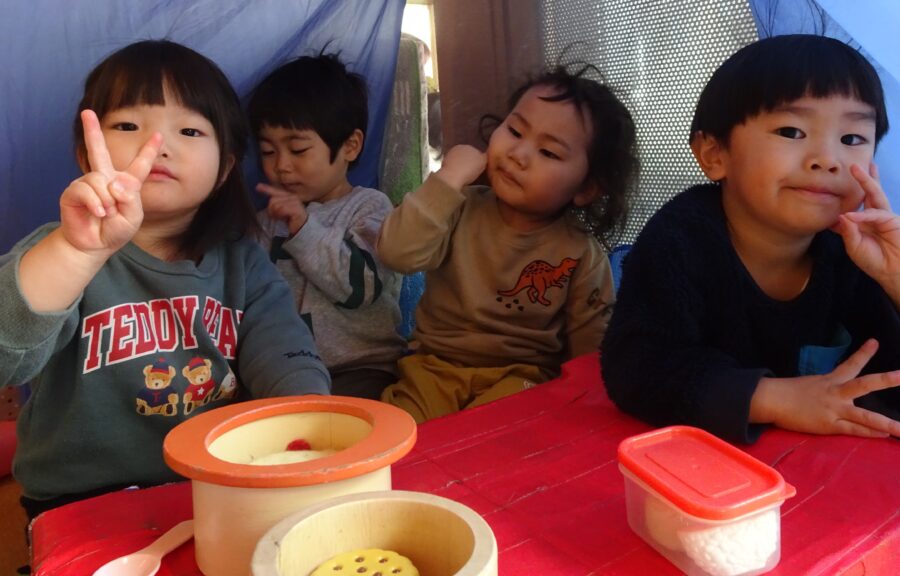 今日はテントの中でおままごと![]()