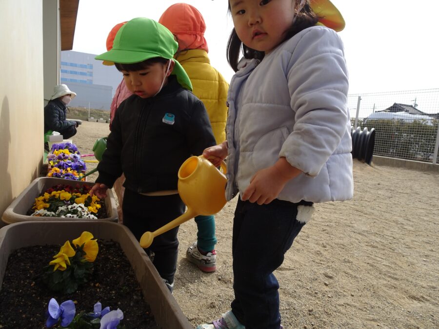 お花に水やりをしたり