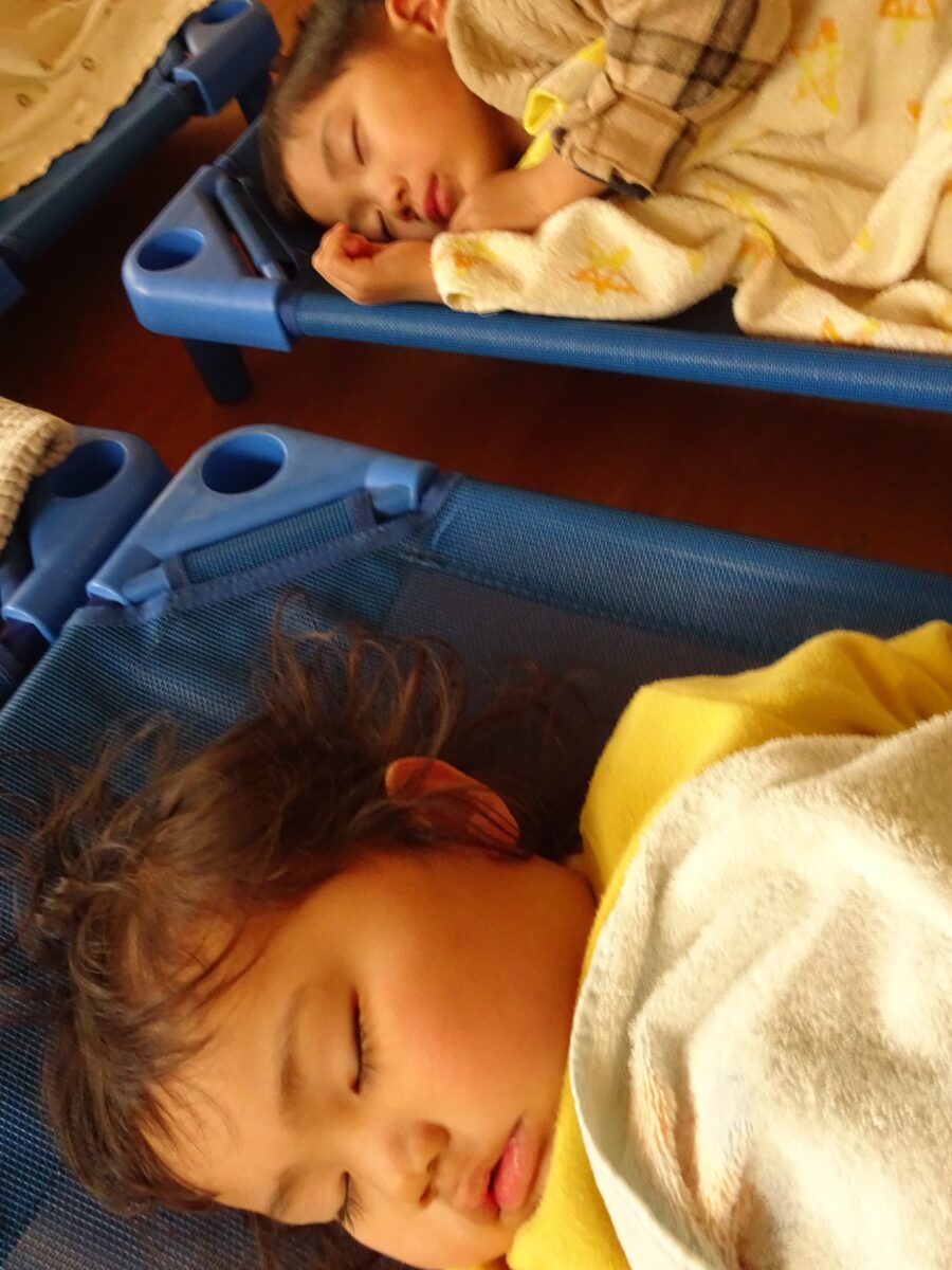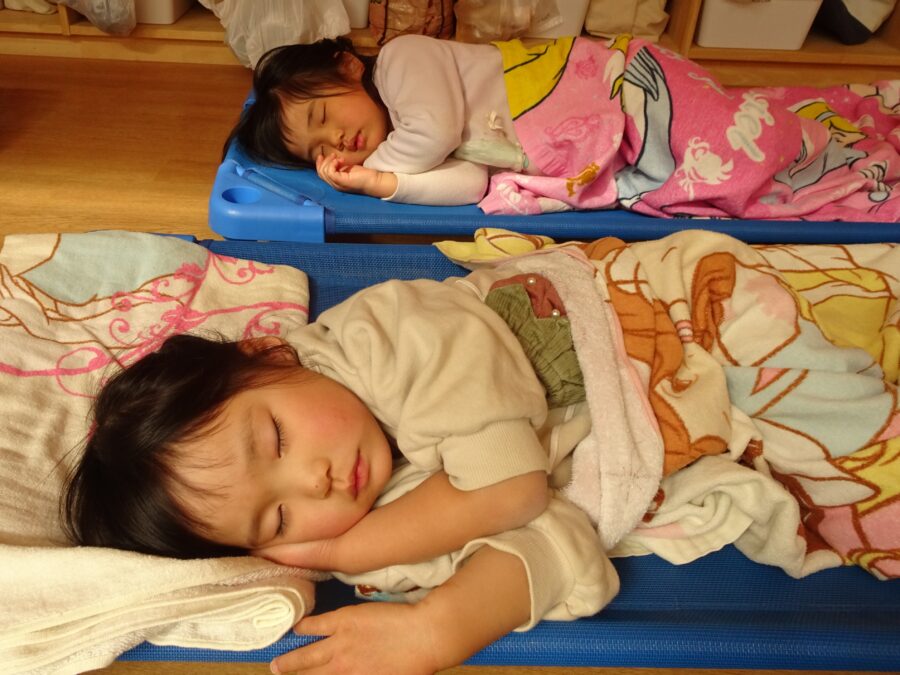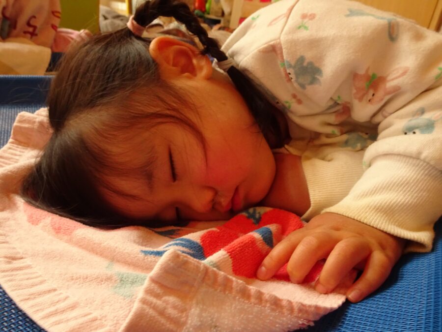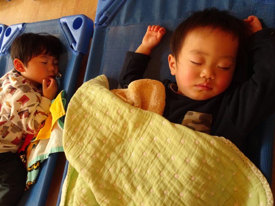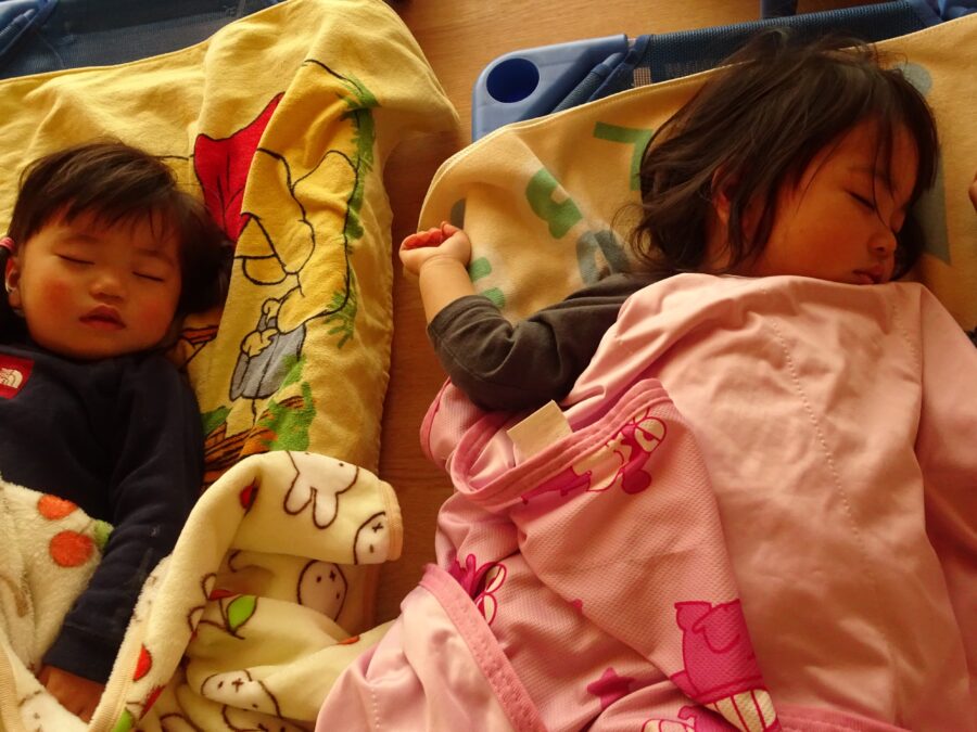 お給食のカレーを食べた後はぐっすり夢の中です…![]()
