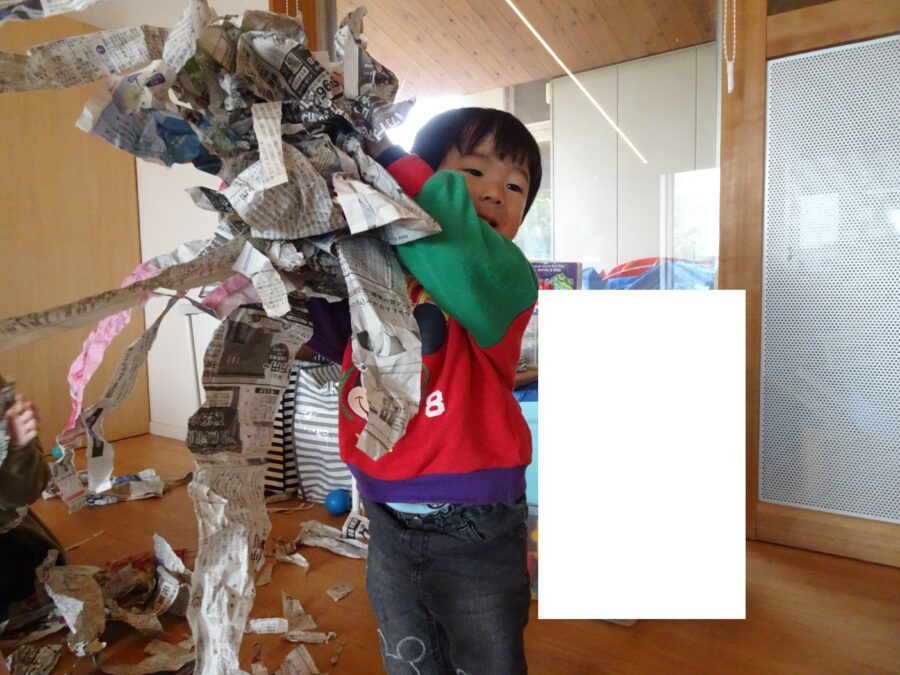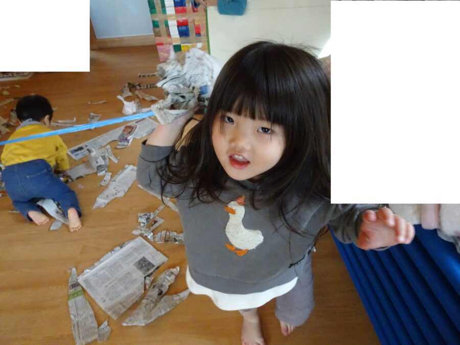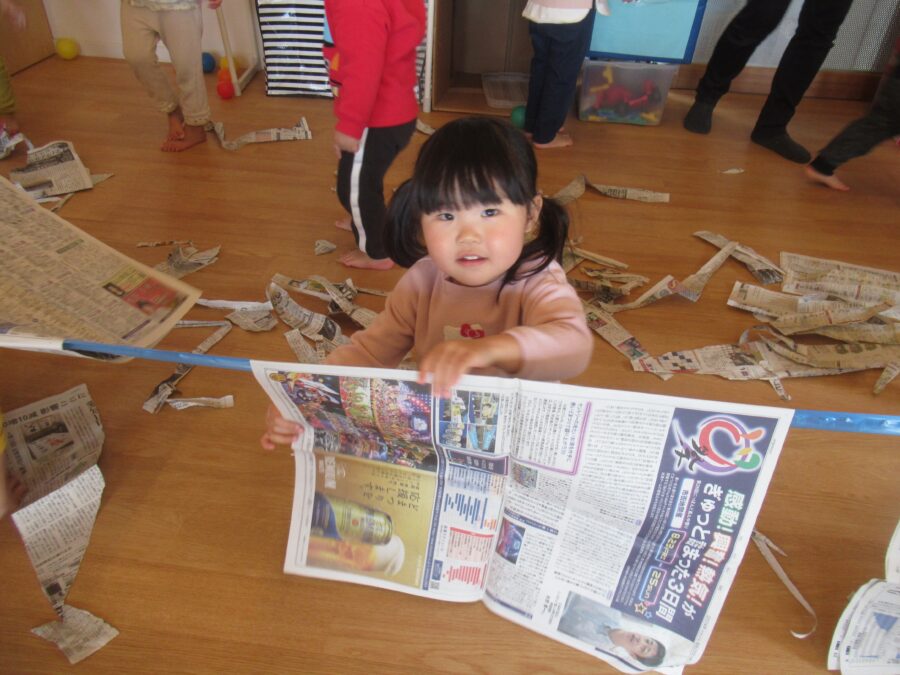 破いたものを集めて、新聞紙シャワーのように遊んでいました![]()