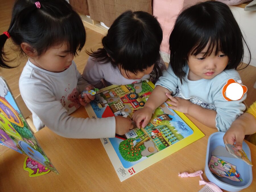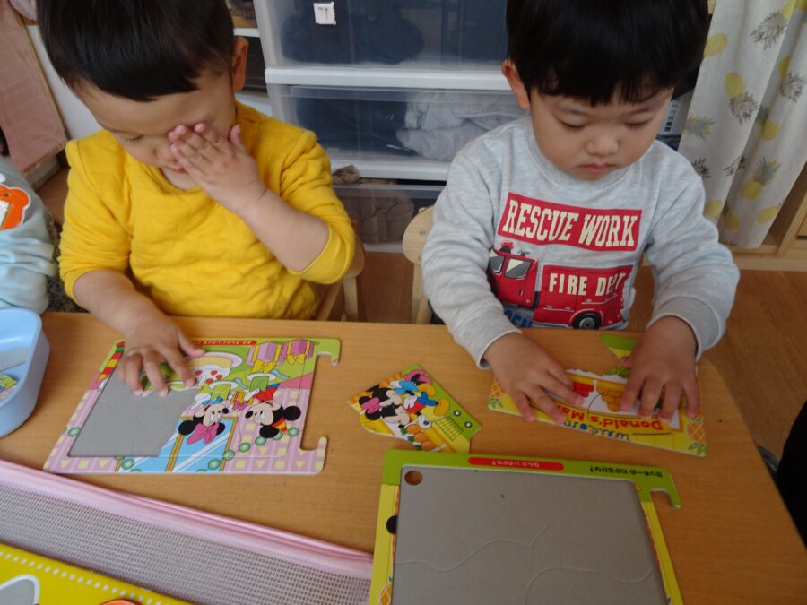 1つのパズルを3人で一緒に協力する姿もありました![]()