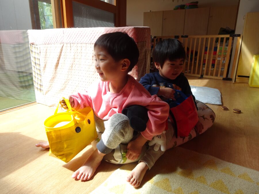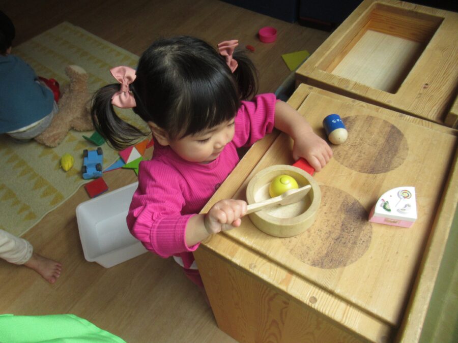 おままごとコーナーでは、クッキング中の子がいましたよ![]()