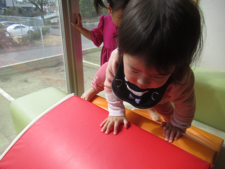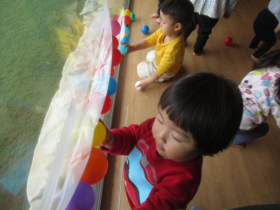 壁にボールをつけて遊んでいるお友だちもいましたよ![]()