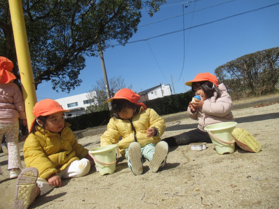 こちらのお友だちもお砂遊びですね![]()