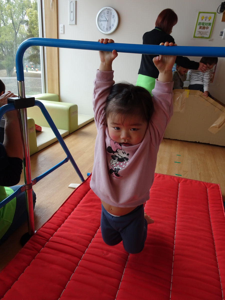鉄棒にぶら下がったり、