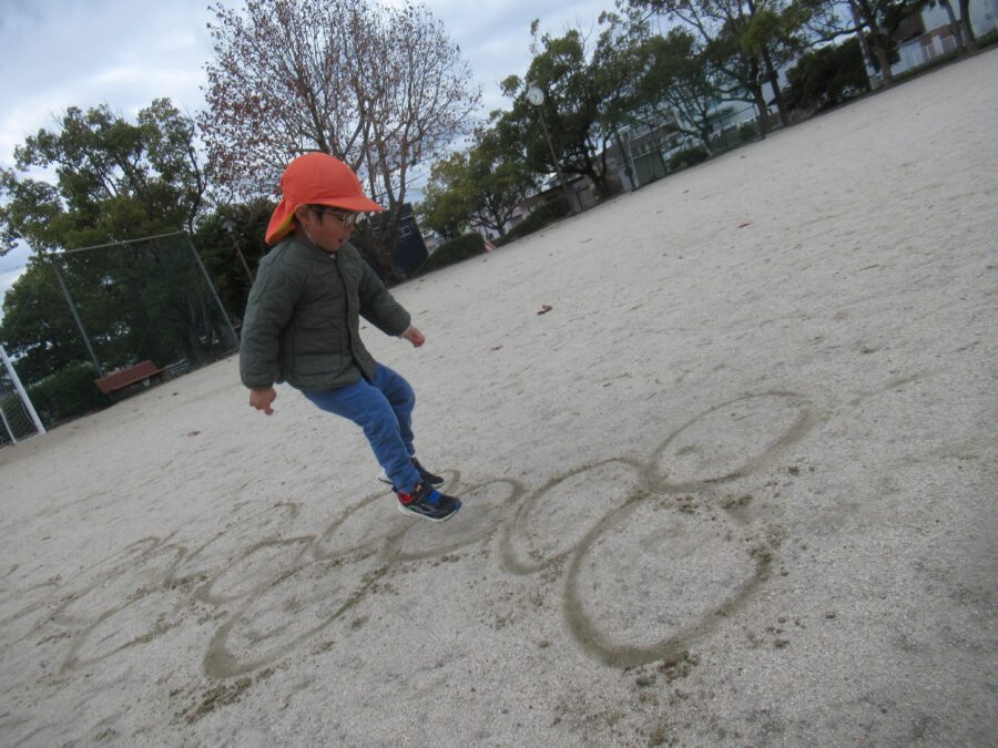 「けんけんぱ!」と丸に合わせて足を動かしジャンプをしていました![]()