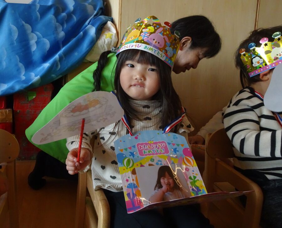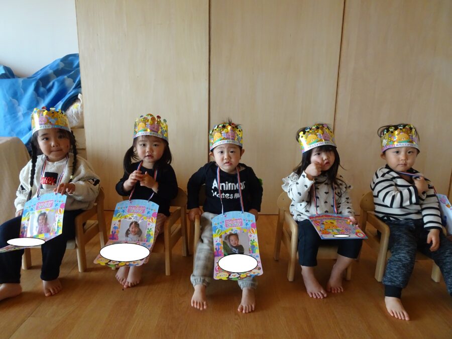1つ大きくなったことを誇らしげに、みんな何歳になったか上手に言えましたよ![]()