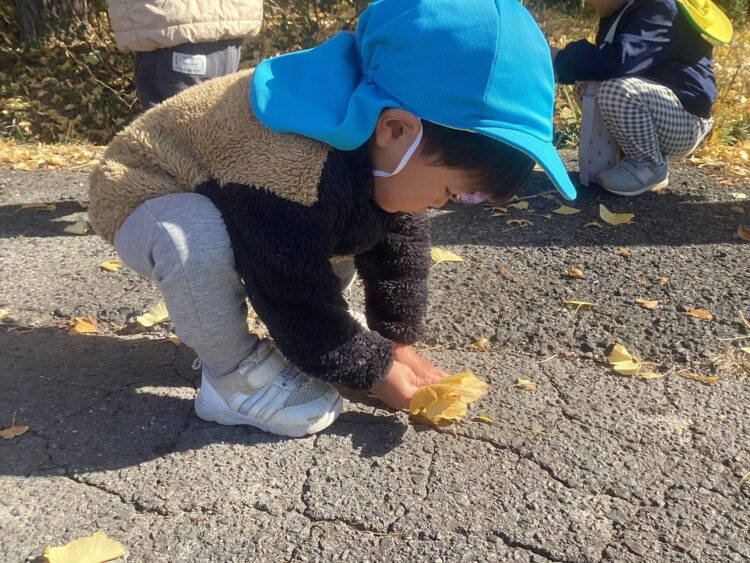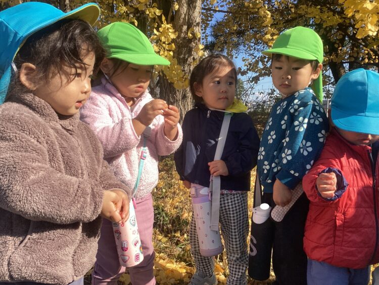 イチョウや銀杏、まつぼっくりやどんぐりをたくさん見つけました![]()