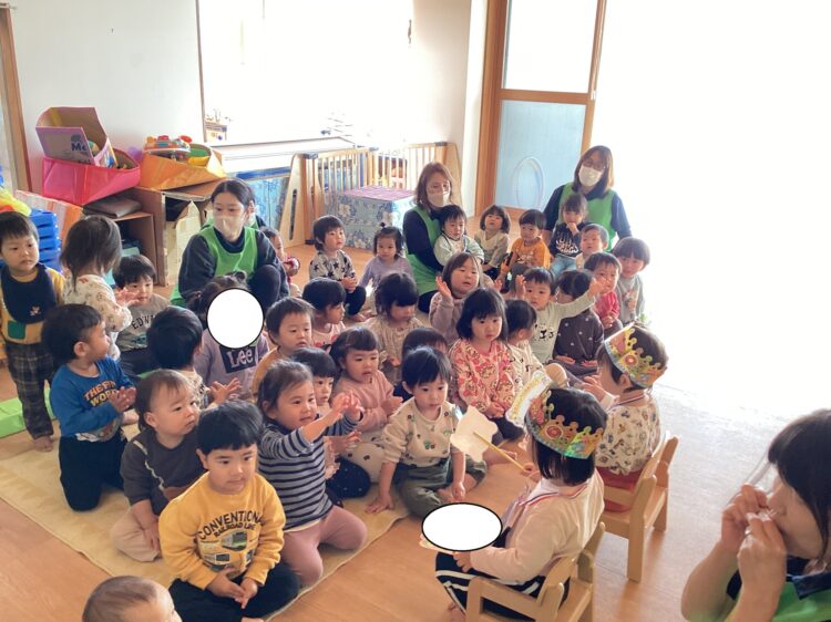 のびのびのお友だちは、今日初めて幼児もお友だちの誕生会に参加しました。