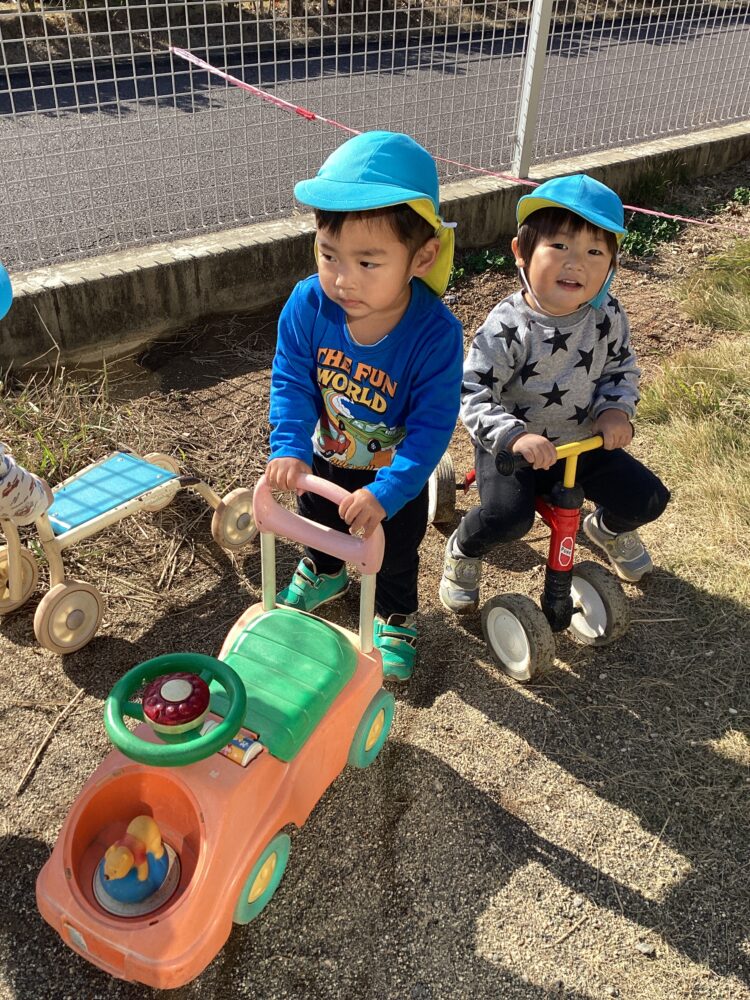 にこにこさんとすくすくさんは園庭で遊びました![]()
