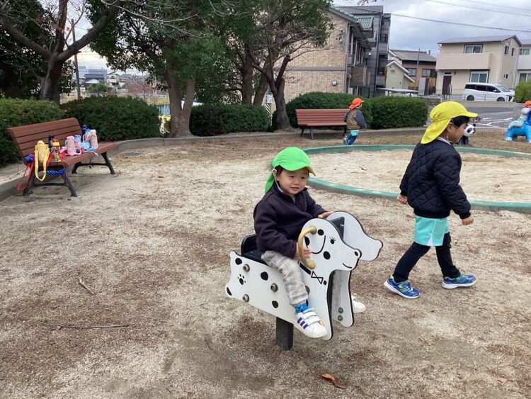 こちらは幼児のお兄さん、お姉さんと一緒にお散歩✨