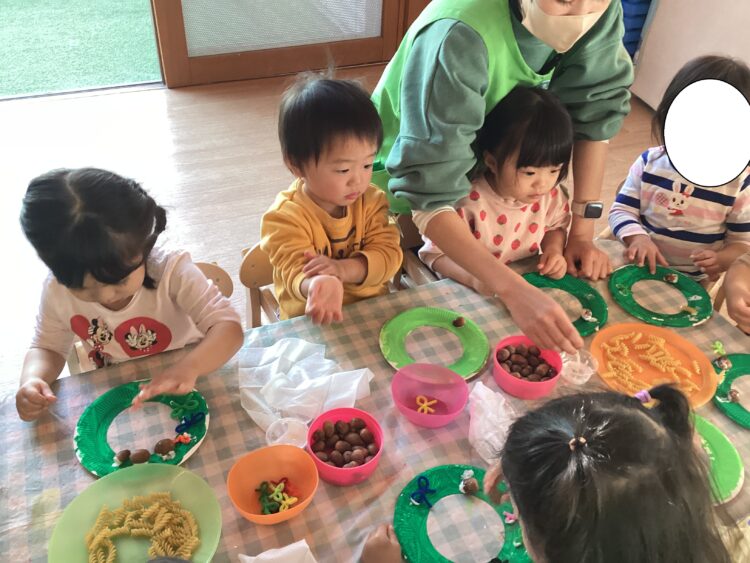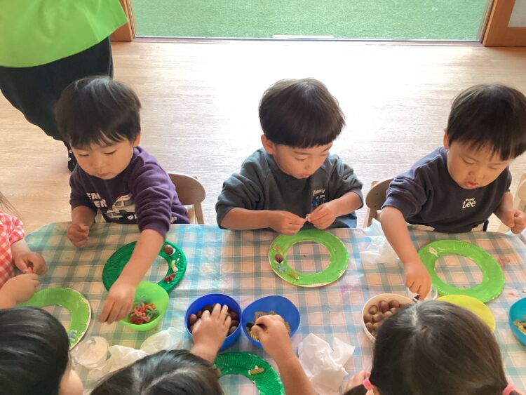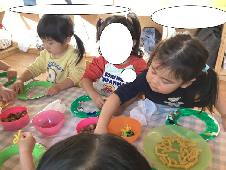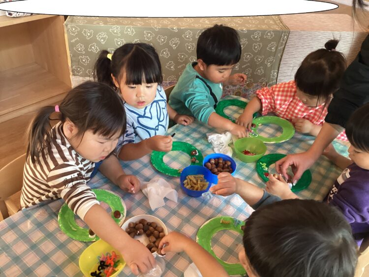今日はクリスマス製作でリースに飾り付けをしました![]()