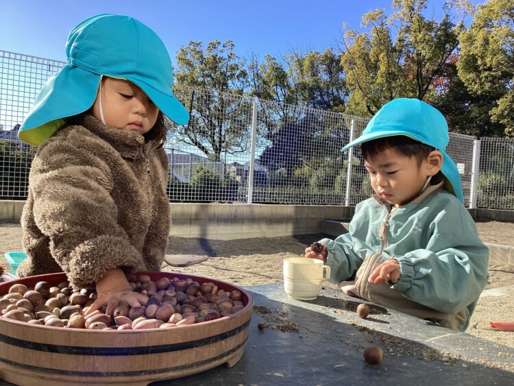 園庭チームさんはたくさんのどんぐりを使っておままごとをしていました![]()