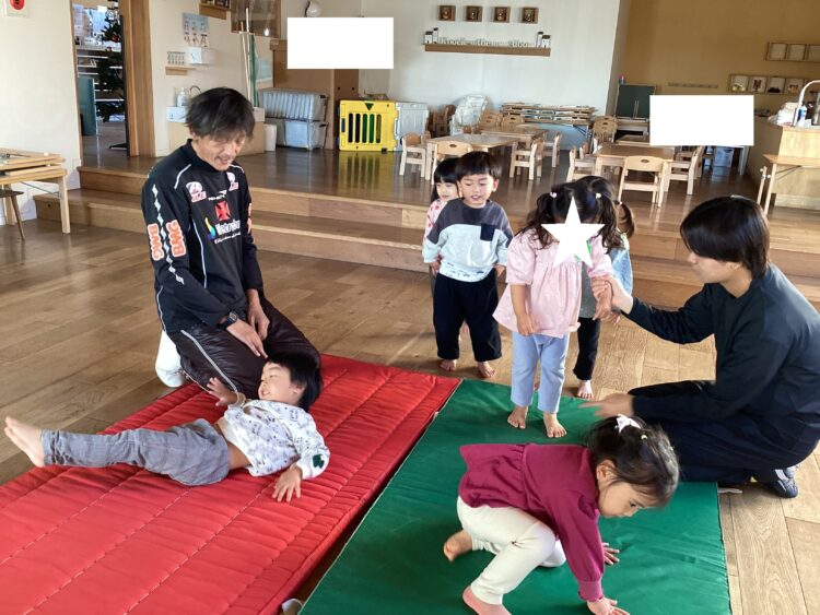 今日の体操あそびは、マットで前転あそびです![]()