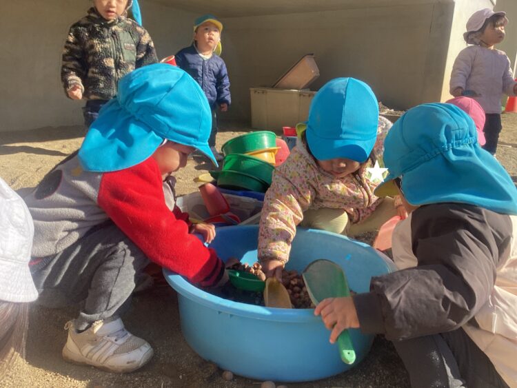 すくすくさんやにこにこさんは、園庭で遊びましたよ![]()