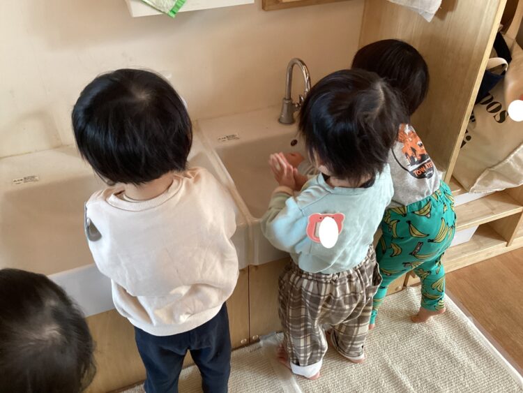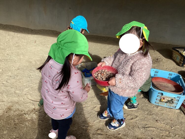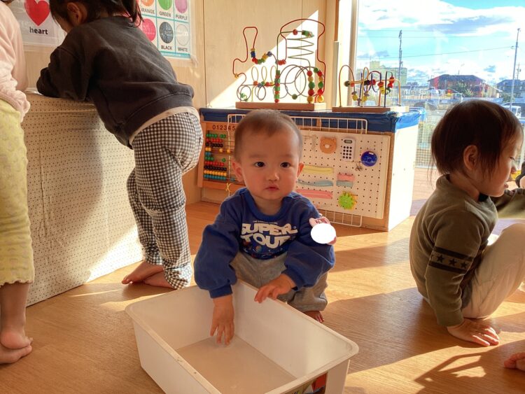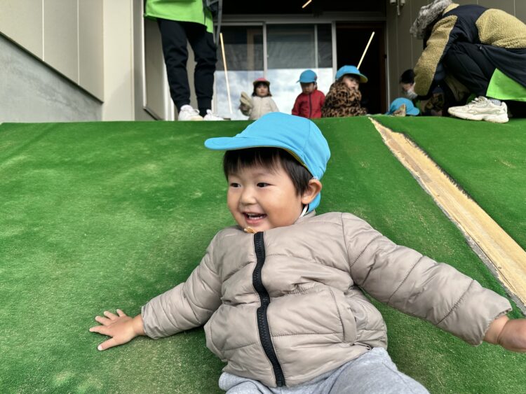 今日は園庭で遊びました!水たまりをよけて上手に遊んでいましたよ![]()