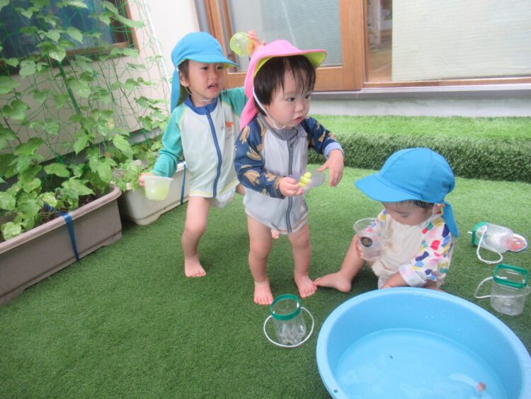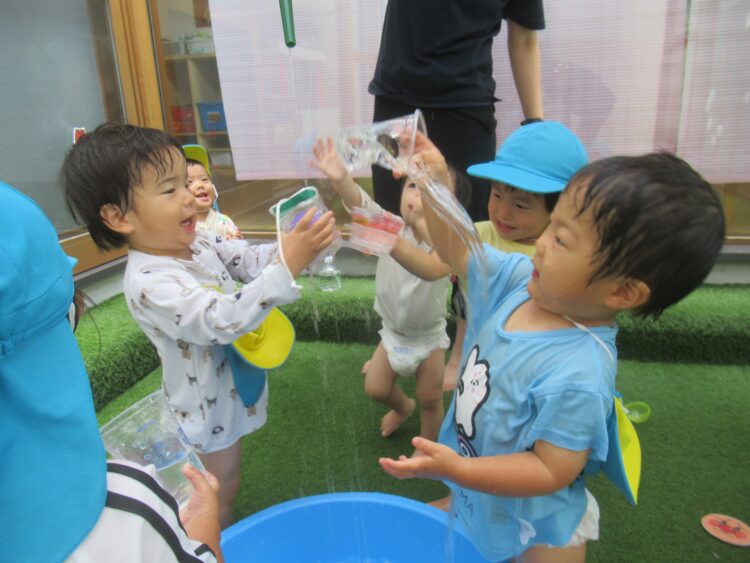 中庭の水遊びの様子です![]()