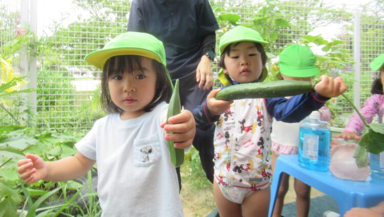 大きなきゅうりとオクラを収穫しました!![]()