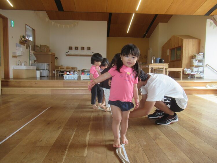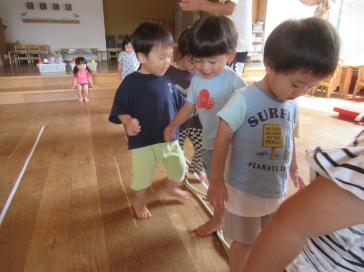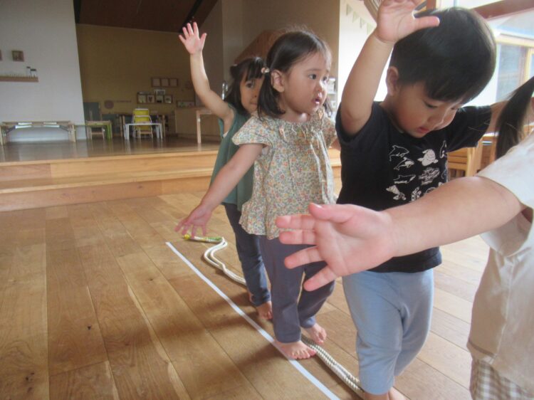 綱渡り、みんな先生のお話しを真剣に聞いて、両手を広げて上手に渡ることができました![]()