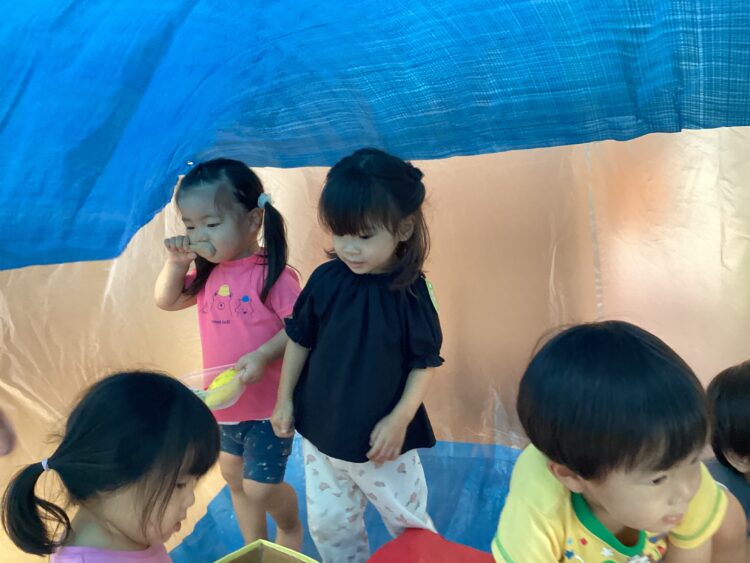 他にも、巨大しゃぼん玉をしたり、絵本を見たりしていっぱい遊びました