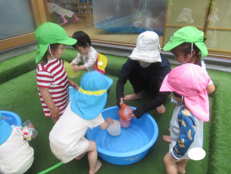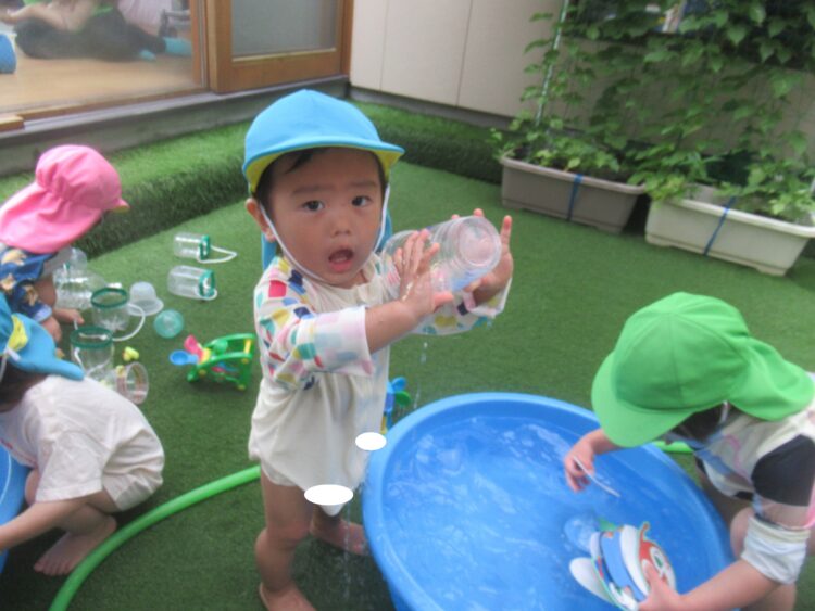 今日は雨も上がって、久しぶりの水遊びができました