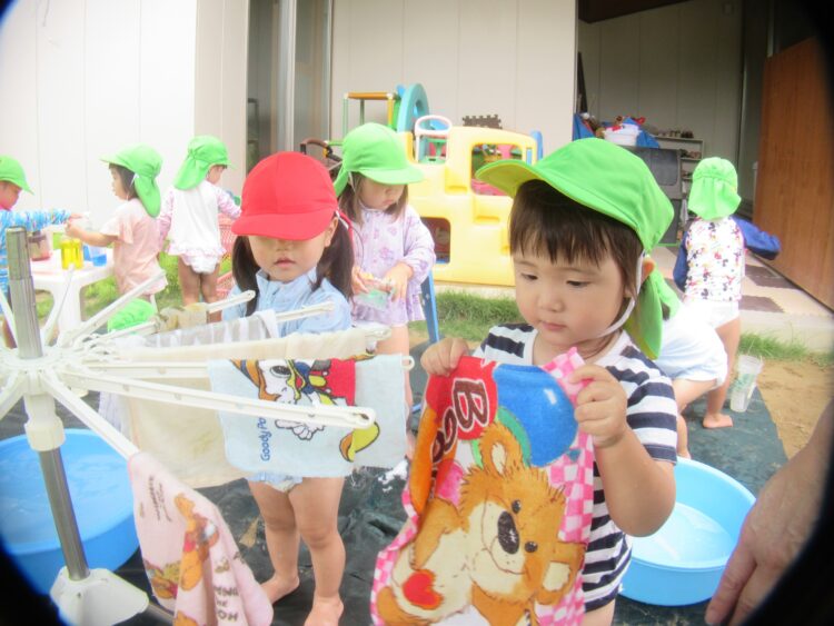 お洗濯日和だったのでみんなでお洗濯遊びをしました![]()