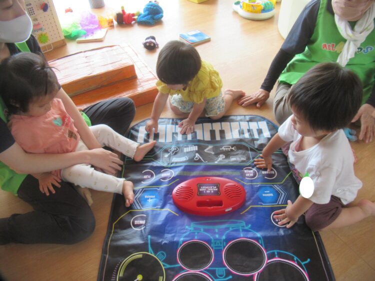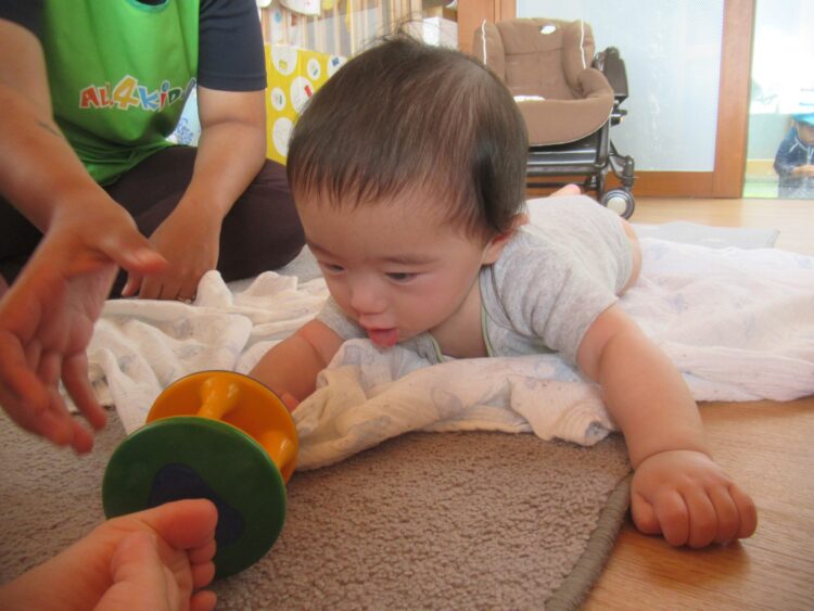 お気に入りのおもちゃをめがけて手を伸ばしているお友だちもいました![]()