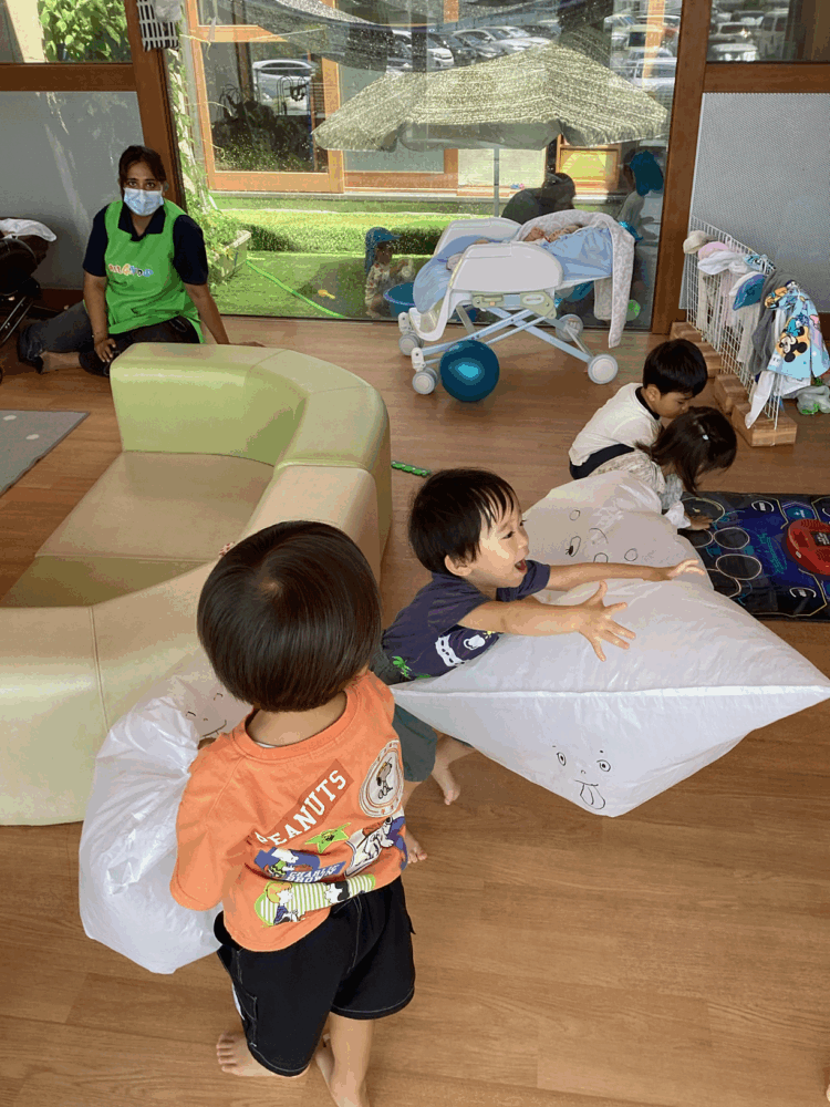 室内では大きなビニール風船で遊びました!