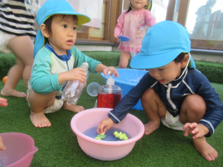 中庭では色水あそび