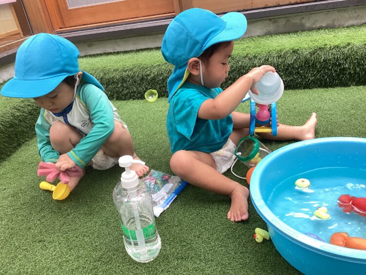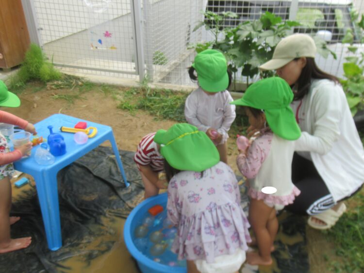 色水遊びや水風船に水鉄砲