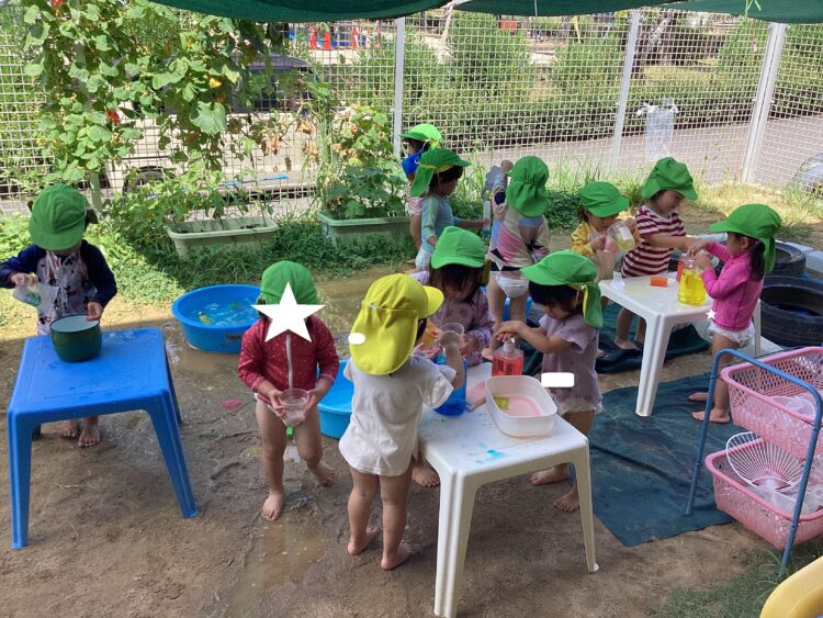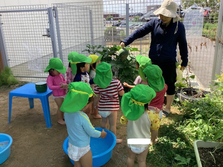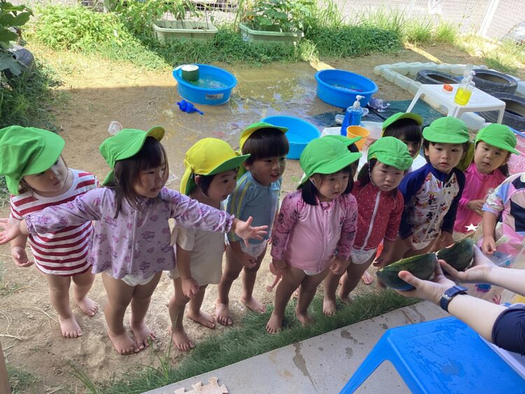 乳児園庭の子ども達は、大好きなお水遊びを楽しみました![]()