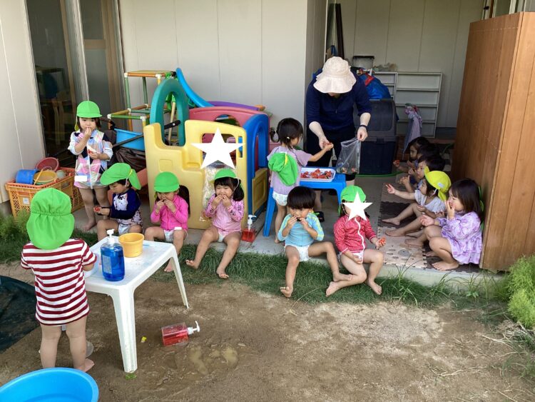 みんなで食べたスイカはとっても美味しかったね![]()