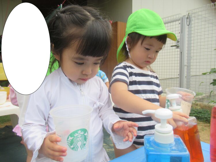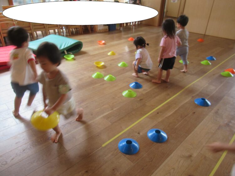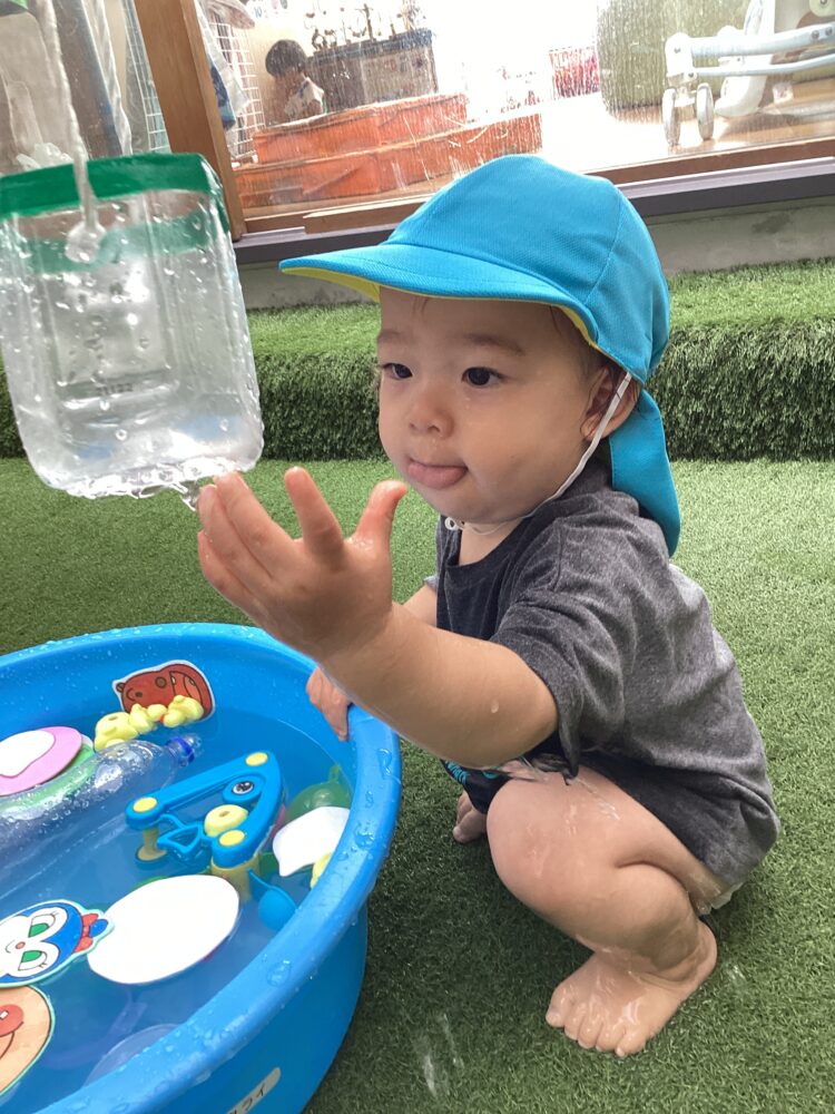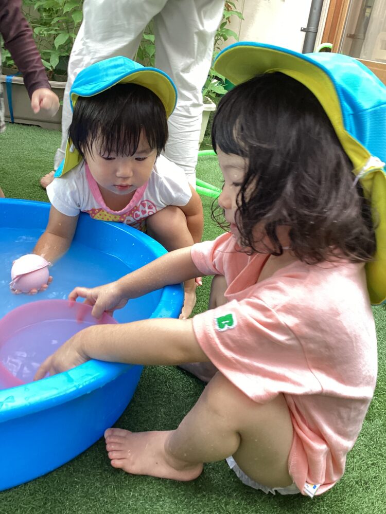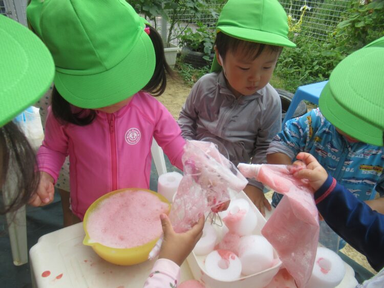 お部屋ではカラーポリ袋を使って遊んでいます![]()