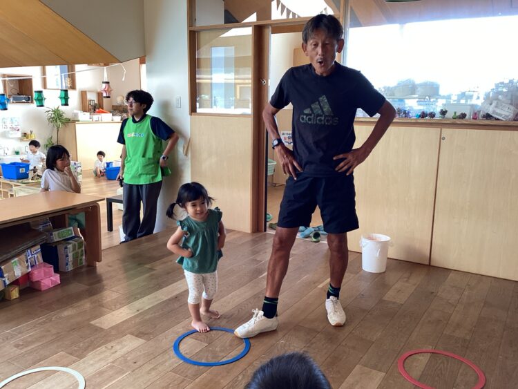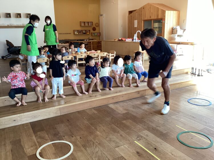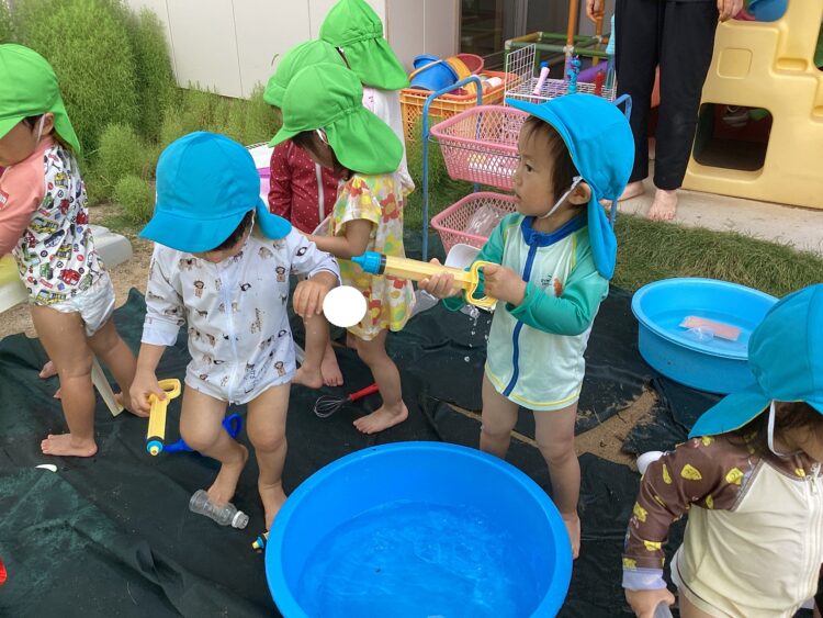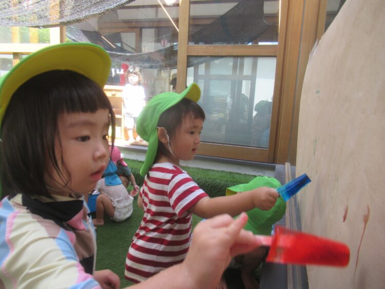 中庭では色水のクレヨンでお絵描きを楽しみました!