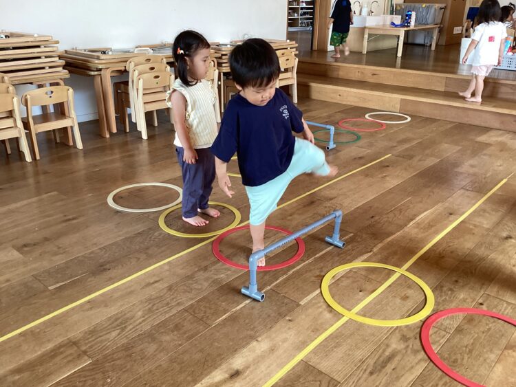 輪っかの中を飛んだり進んだりしてバランスをとっていました!