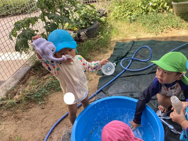 今日も暑かったのでお水遊びがとても気持ち良さそう