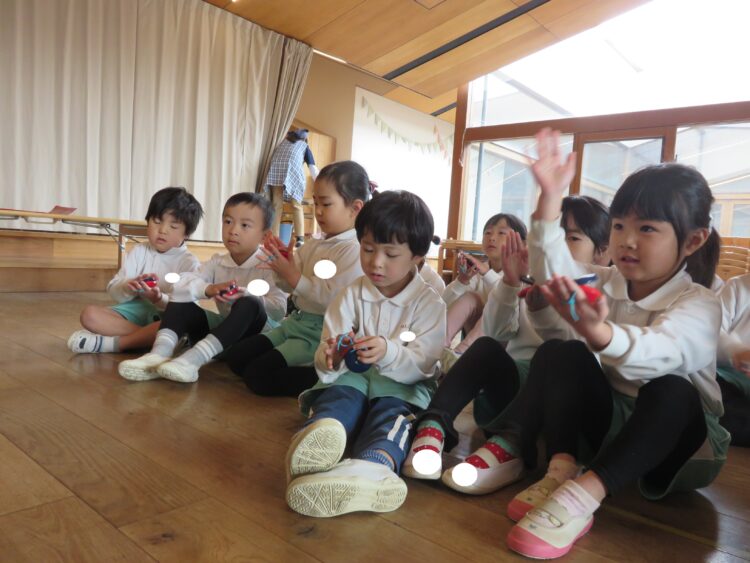 楽器遊びでは「たき火」の曲に合わせて合奏を楽しみましたよ![]()