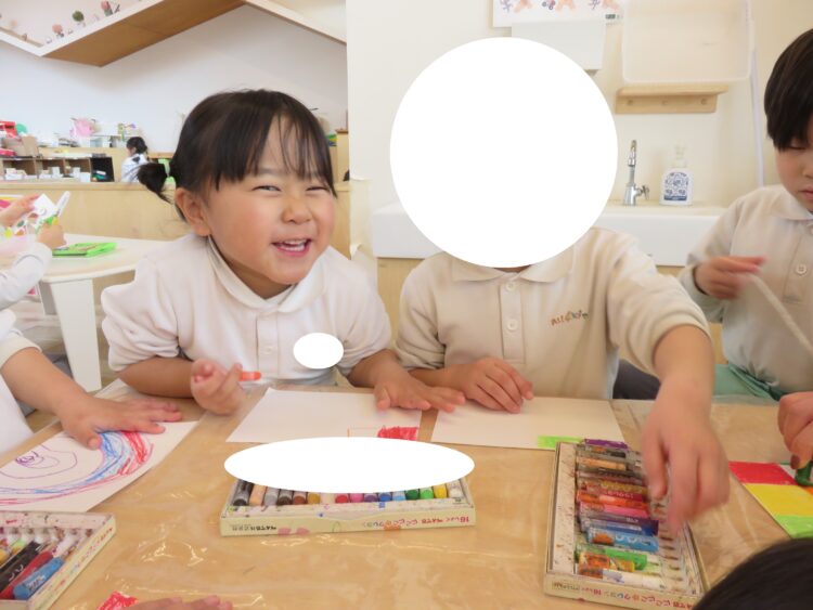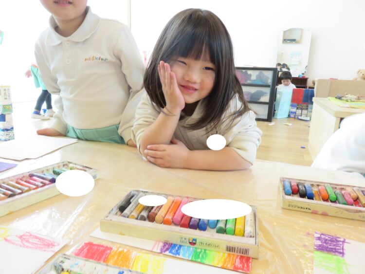 と眺め、早速クレヨンを持ってきて、お絵描きを楽しんでいました![]()