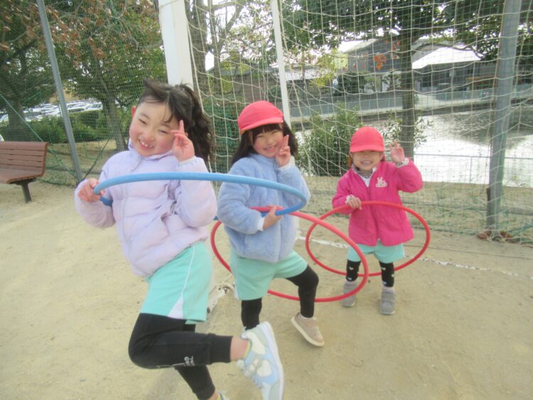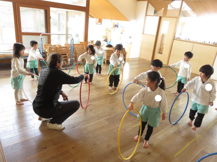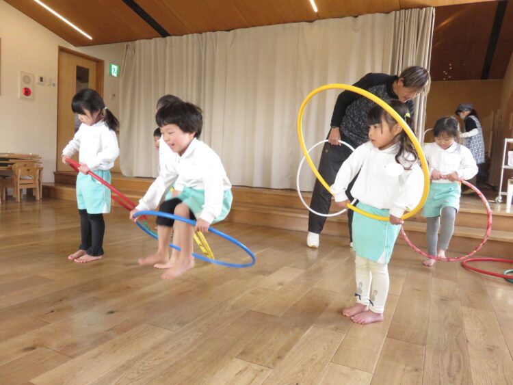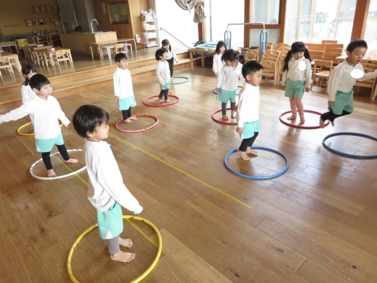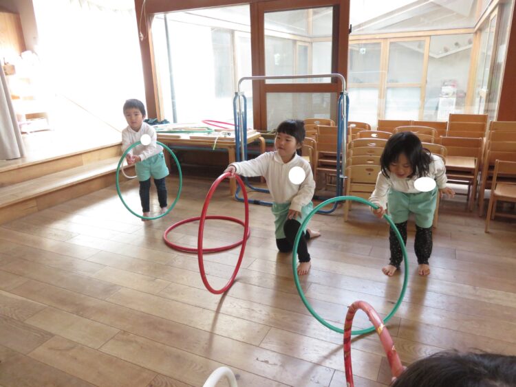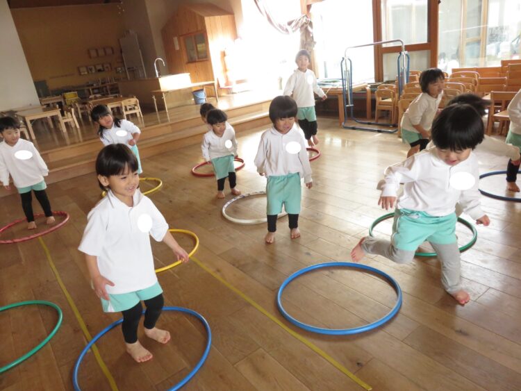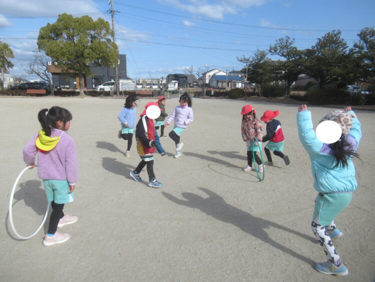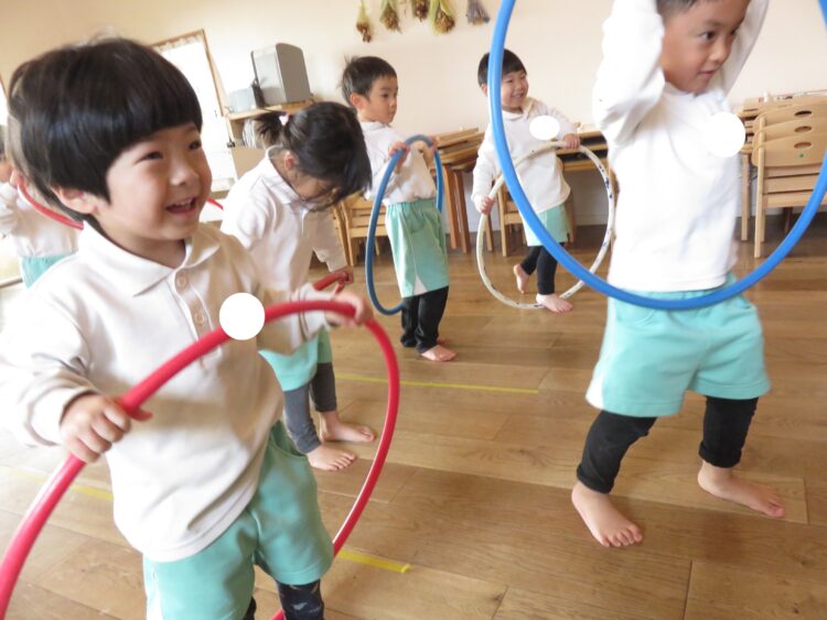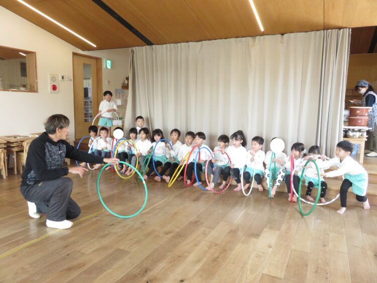 フラフープ鬼ごっこでたくさん体を動かしたね!