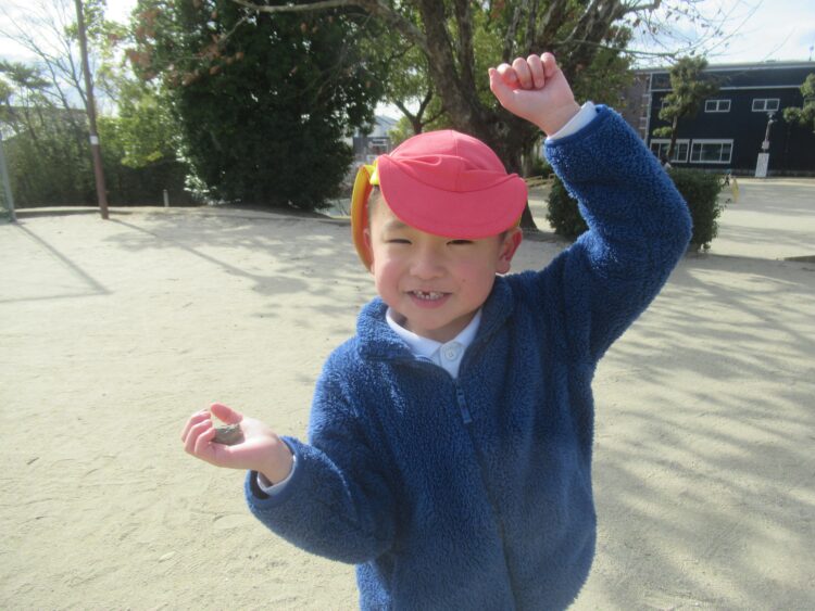 太陽の日に当たるときらきら光る石を見つけたお友だち![]()