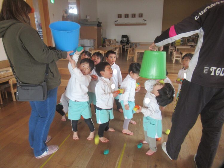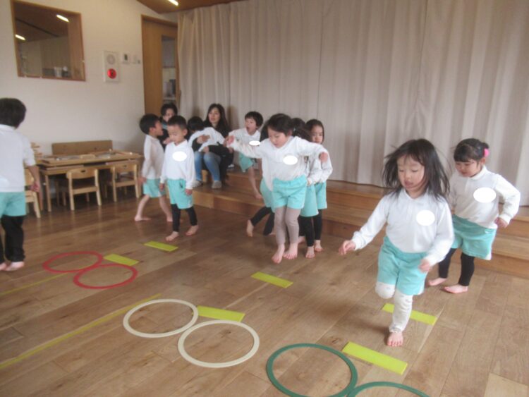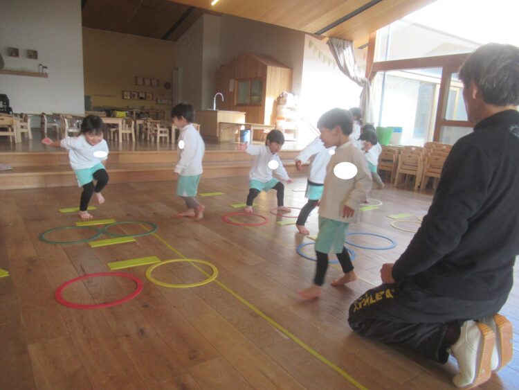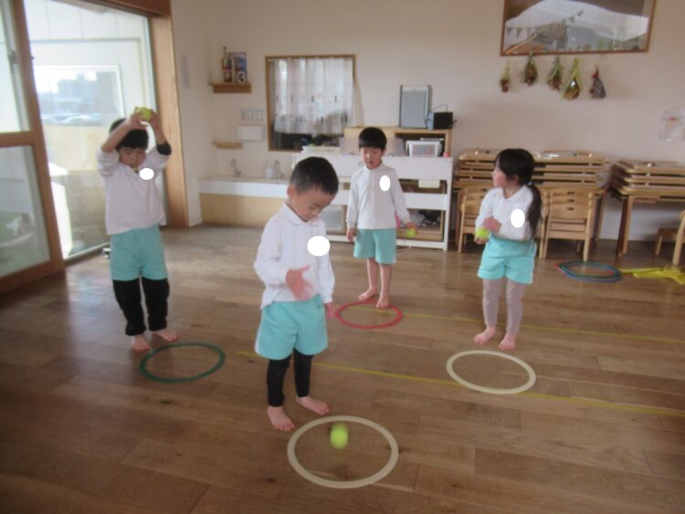 体育あそびでは、けんけんぱ 玉入れも張り切って楽しむわくわくさん😊
