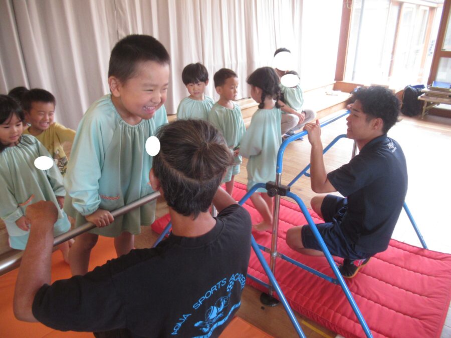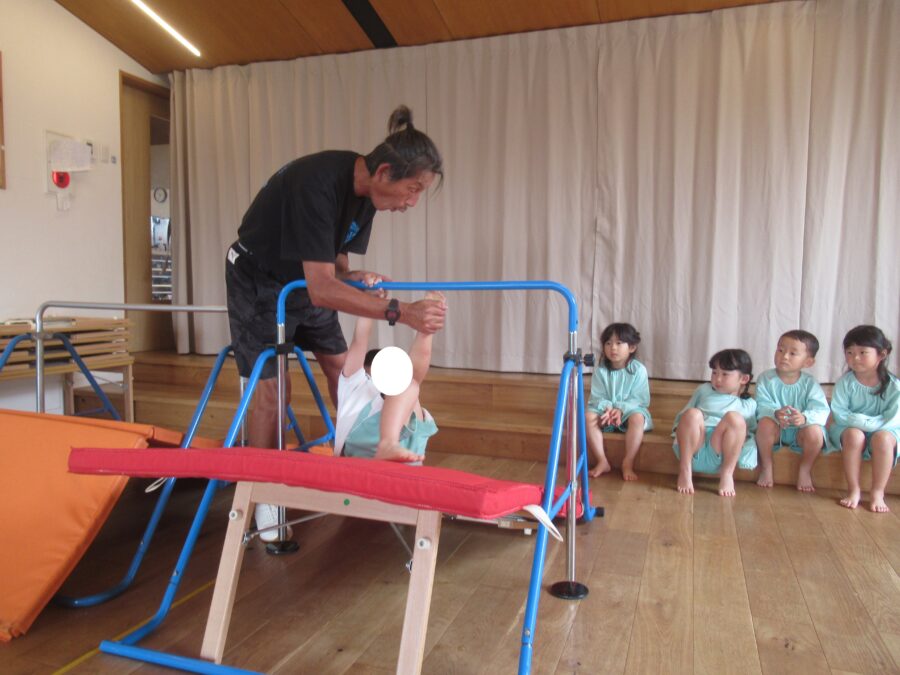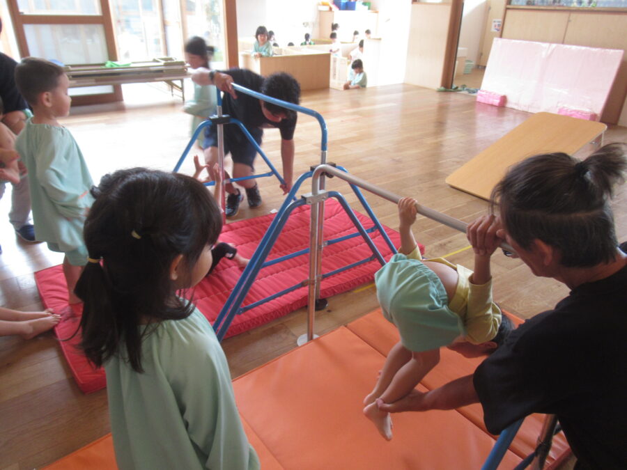 鉄棒で前回りや足抜きまわりに挑戦していました!![]()