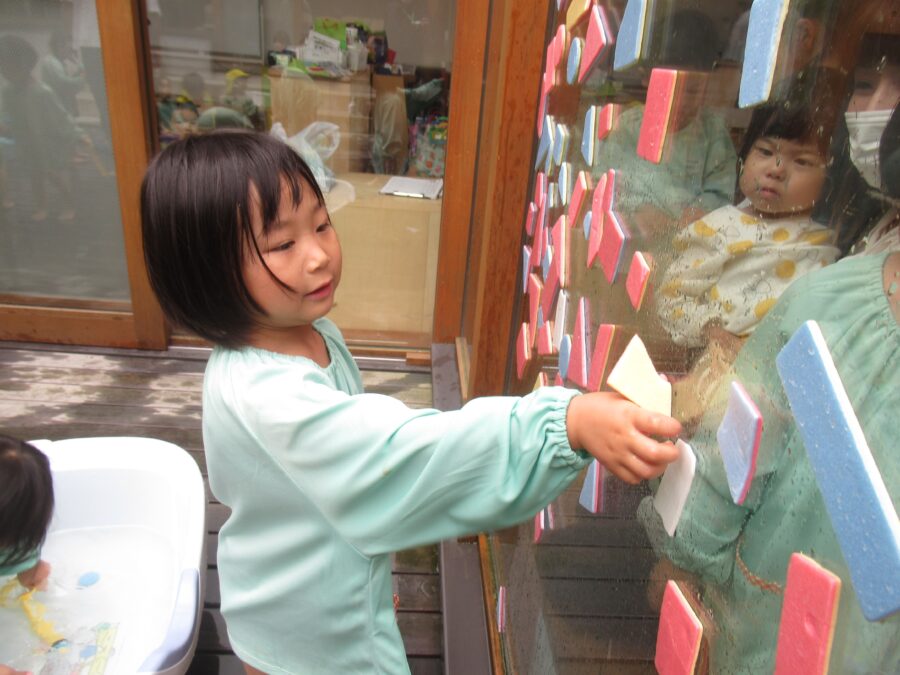 ガラスにペタペタ貼っていろんな形をつくったり、