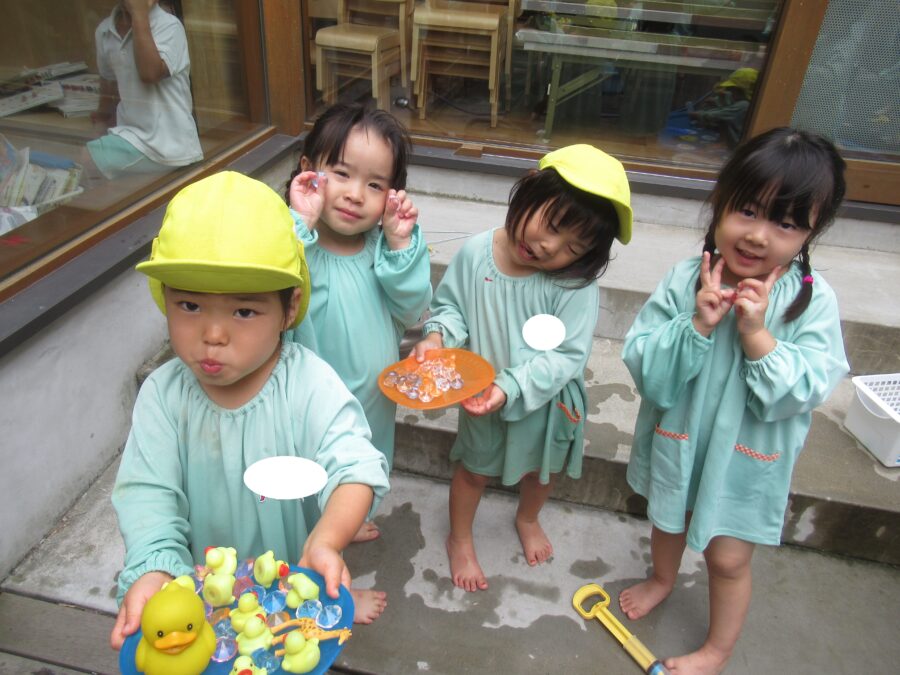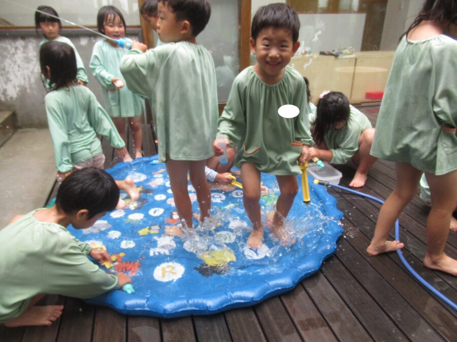 水鉄砲を遠くまで飛ばして遊ぶお友だちもいました![]()