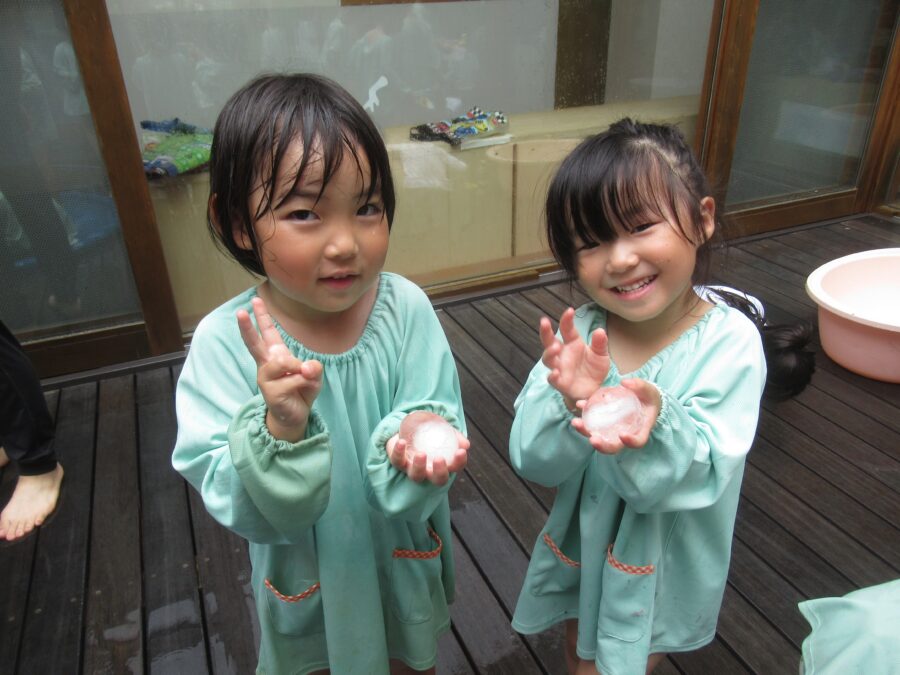 「つめたくてきもちい!」と氷を触ってたのしんだり、
